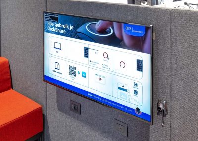 Verrassende overlegplek in de vorm van een treincoupé met technologie voor bedrade én draadloze beeldweergave. Voor kort, informeel overleg.
